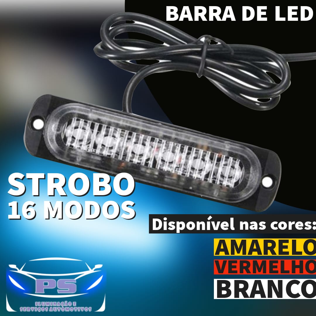 Esta barra de led atende suas necessidades em varios sentidos, podendo ser utilizada como 16 funções diferentes, basta liga-la a tensão positiva (fio vermelho) e negativa (fio preto) e a opções de modos positiva (fio amarelo) que emite sua poderosa luz.