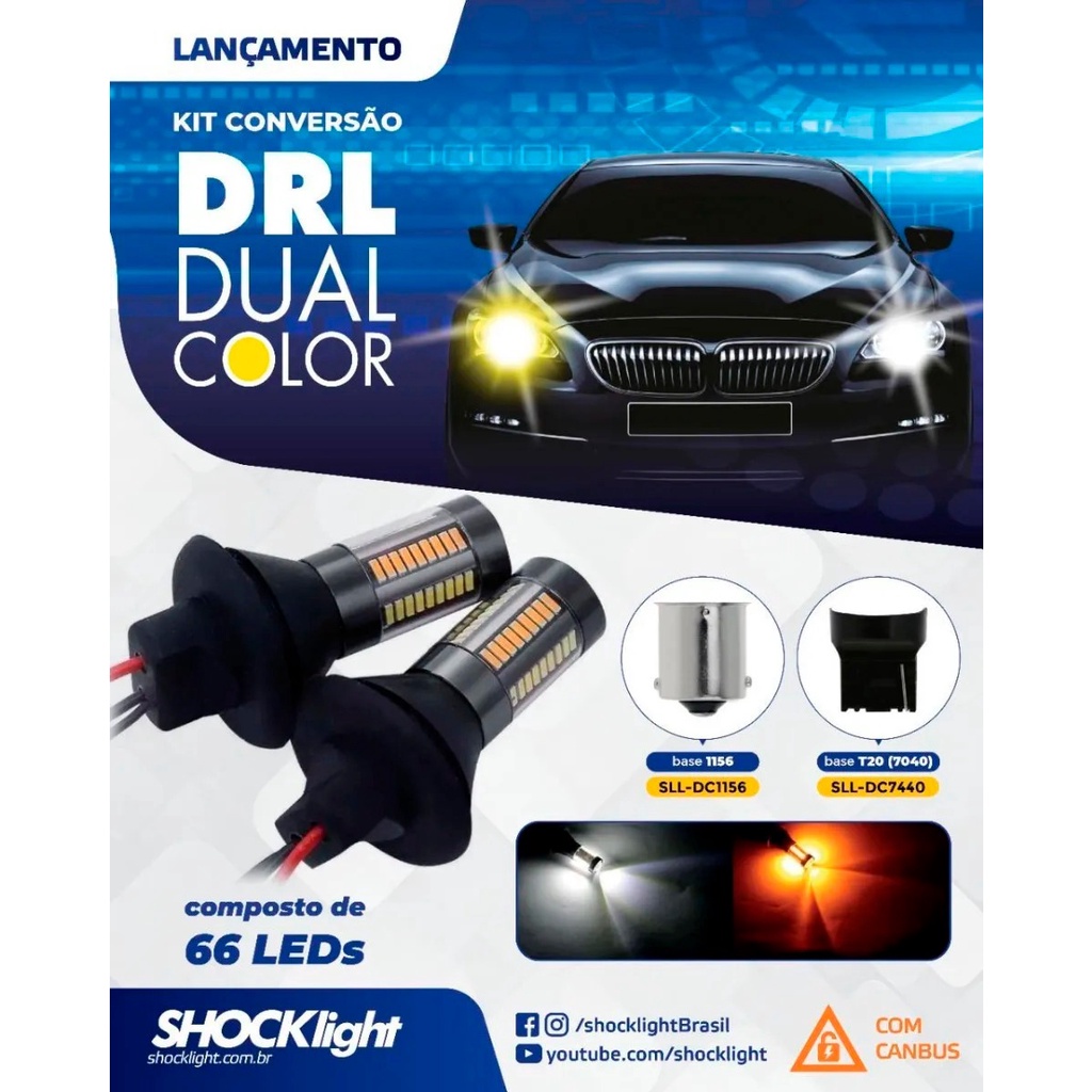 Agora você pode deixar seu veículo muito mais esportivo com este lançamento de lâmpada 2 em 1, sendo pisca com DRL, além da luz de posição DRL diurna ele também faz a função de seta.