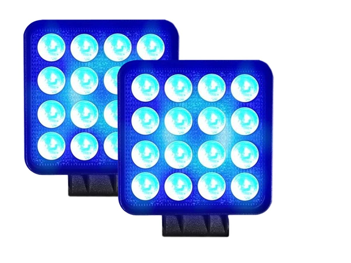Farol com 16 LEDs integrados de alta intensidade na cor azul