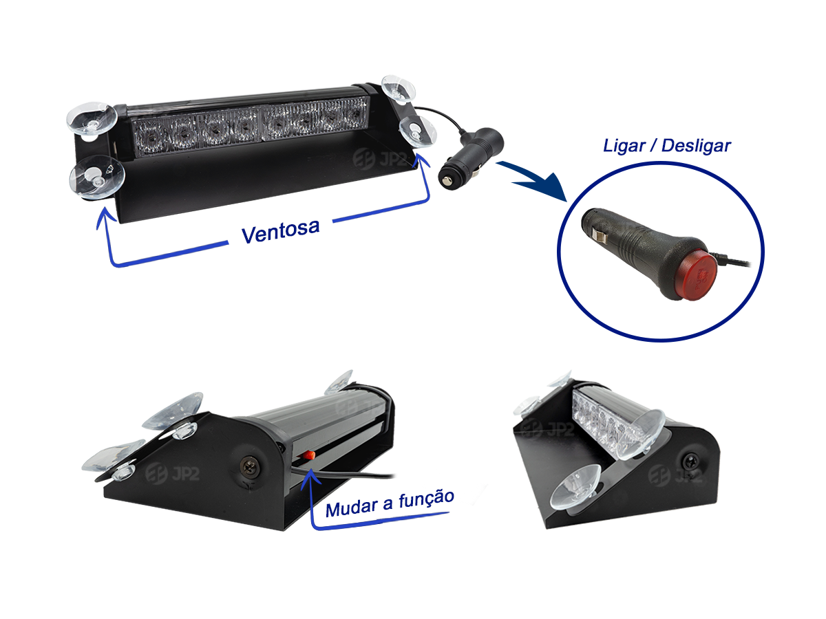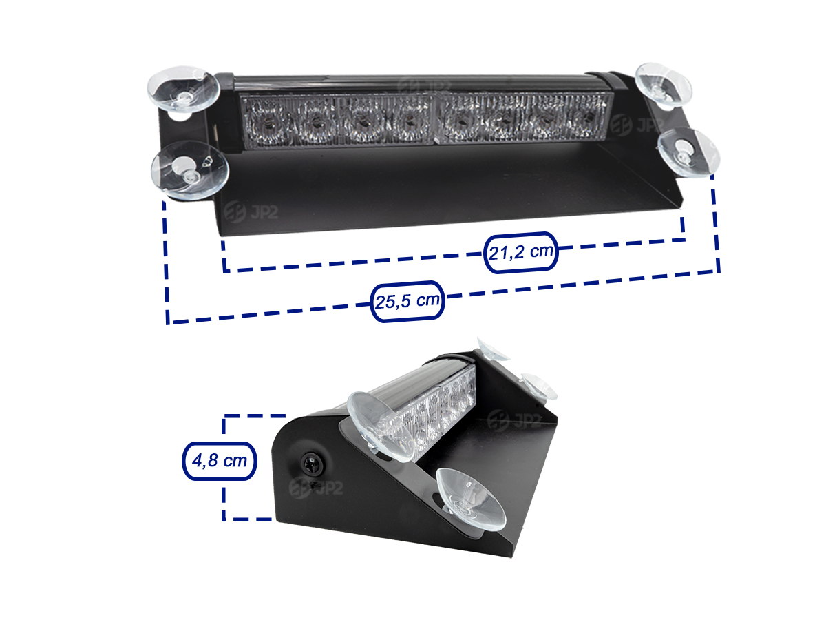 8 LedS em um único painel, não possui sirene.