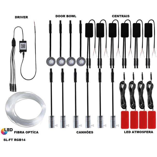 FIBRA ÓPTICA RGB 6 CANHÕES LASER + 4 LEDS ATMOSFERA + 4 LEDS DOOR BOWL, CONTROLE VIA CELULAR